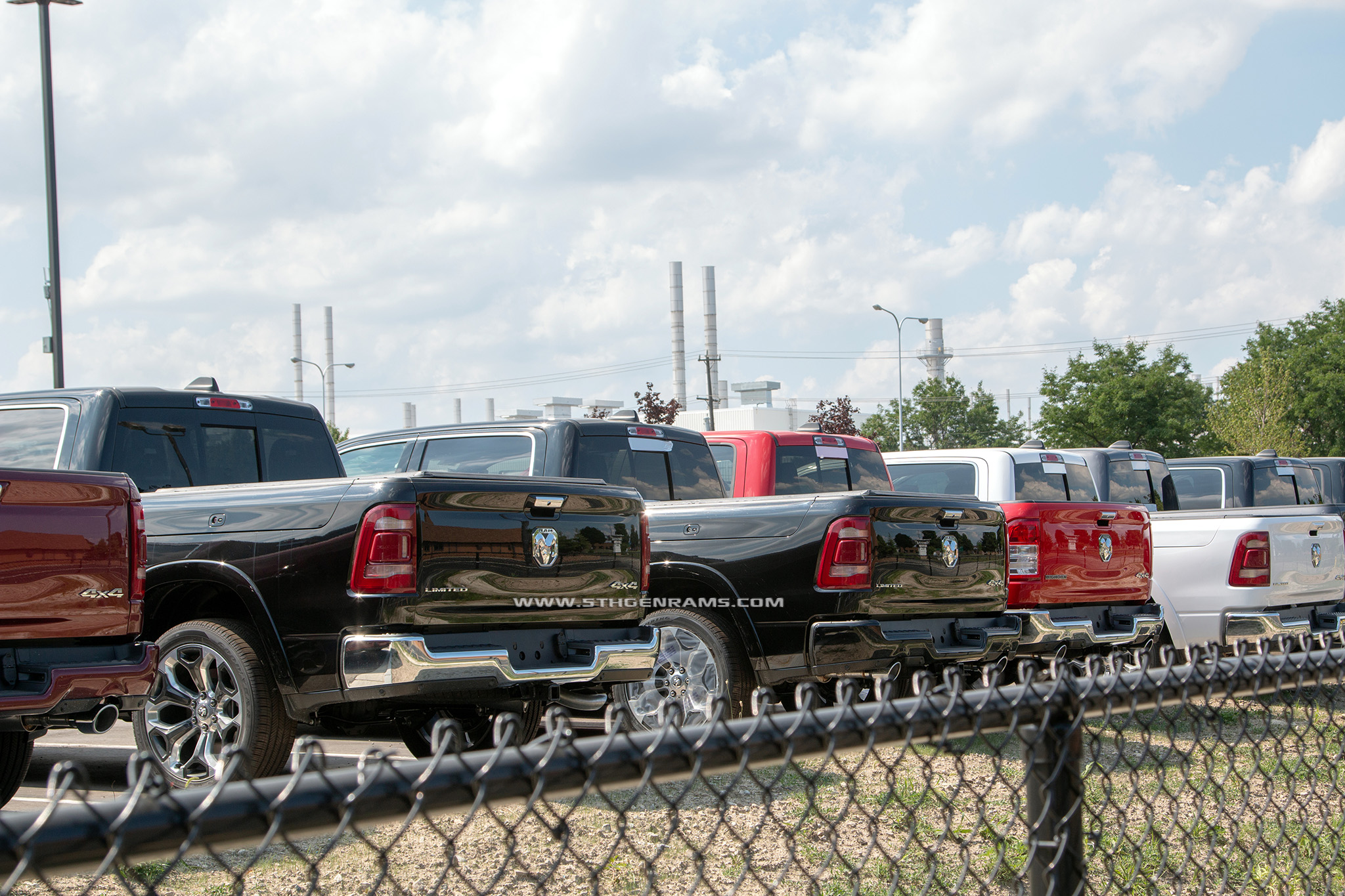 With Ram 1500 production ramping up 2 big things a lot of people were waiting for were the eTorque 5.7 Hemi and the Ram box option. We told you last week that the 5.7 Hemi eTorque equipped trucks went into production and are now as of Sunday July 1st Ram Box trucks have entered production. Thanks to our friends at Real Fast Fotography we have these photos of Ram Box equipped trucks on the Sterling Heights Assembly Plant holding lot.