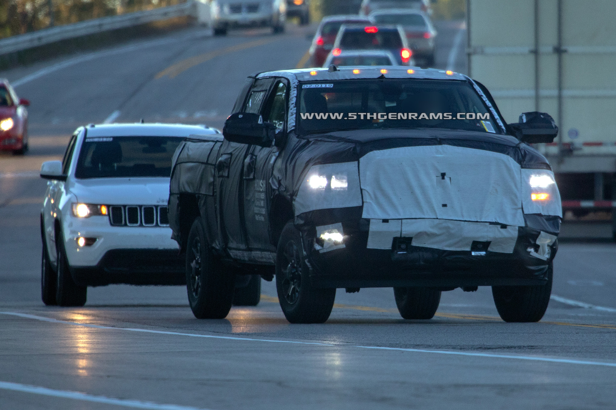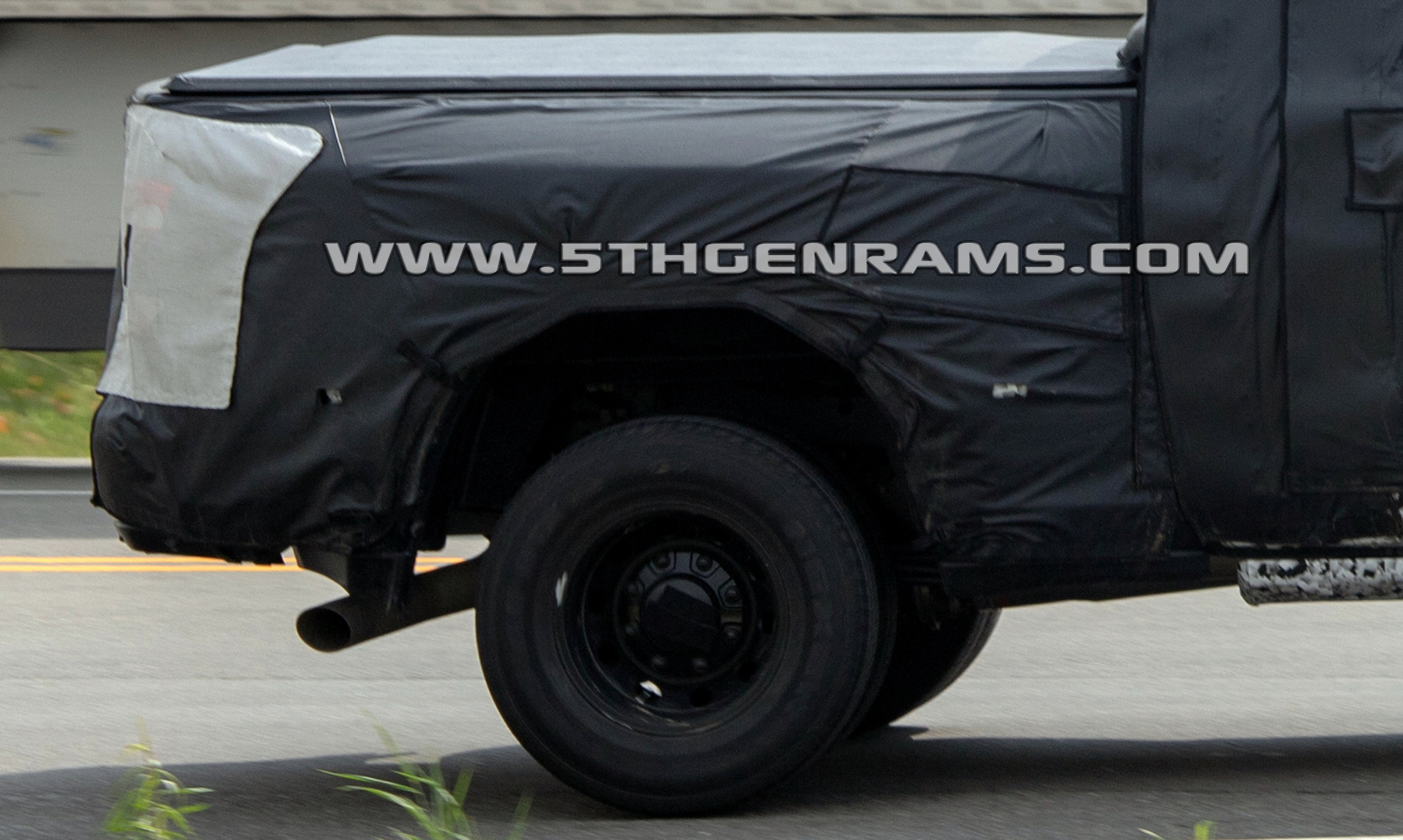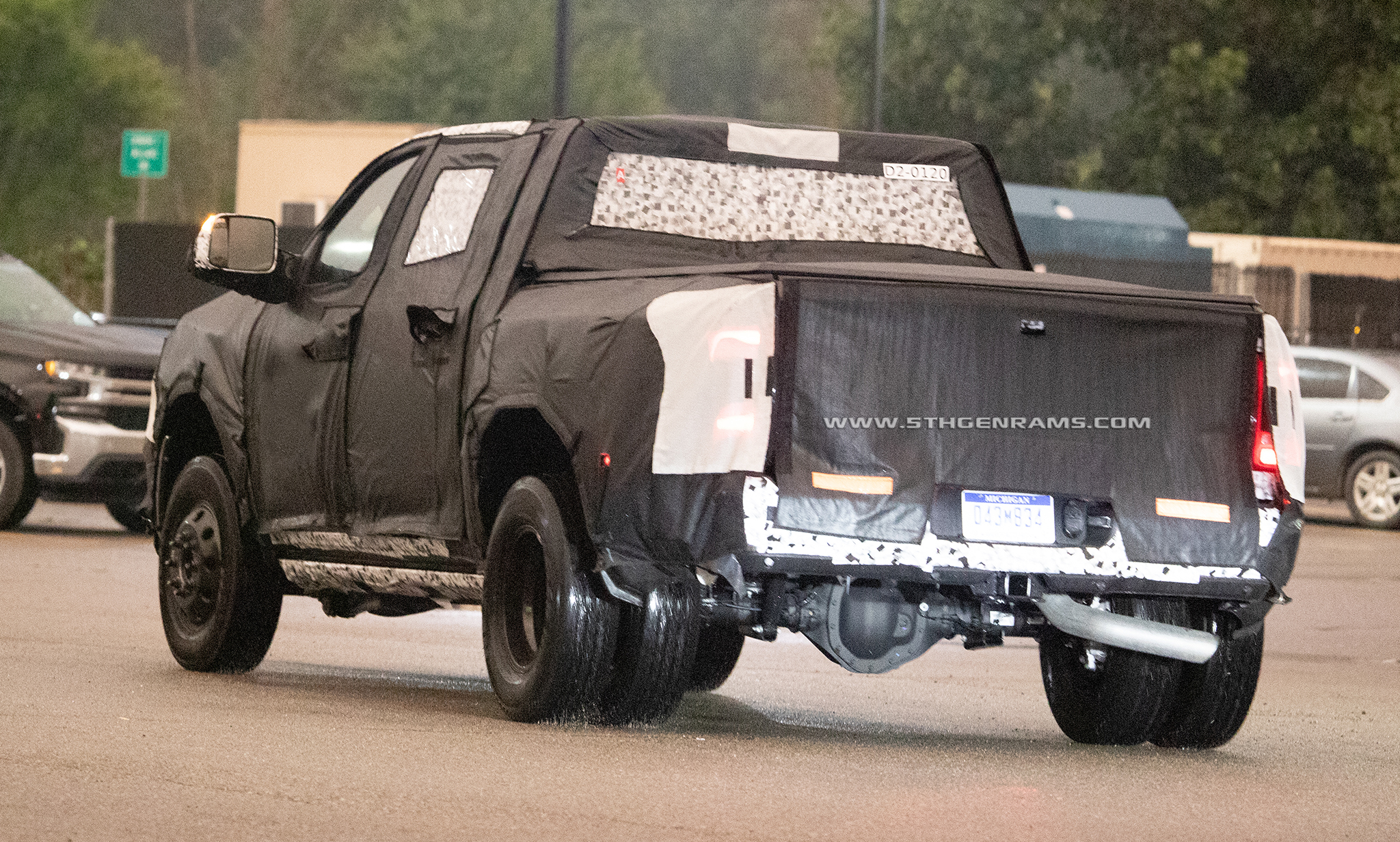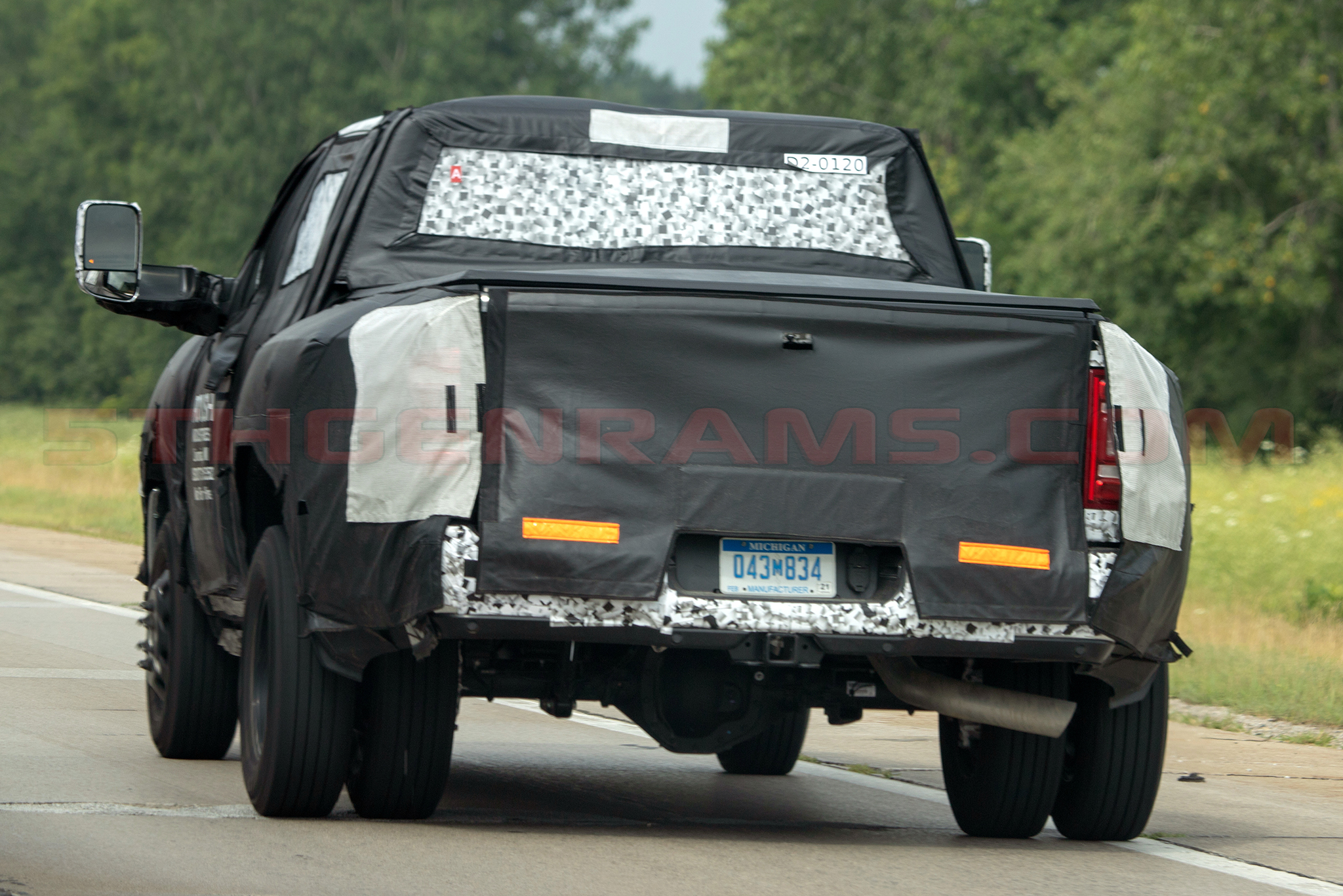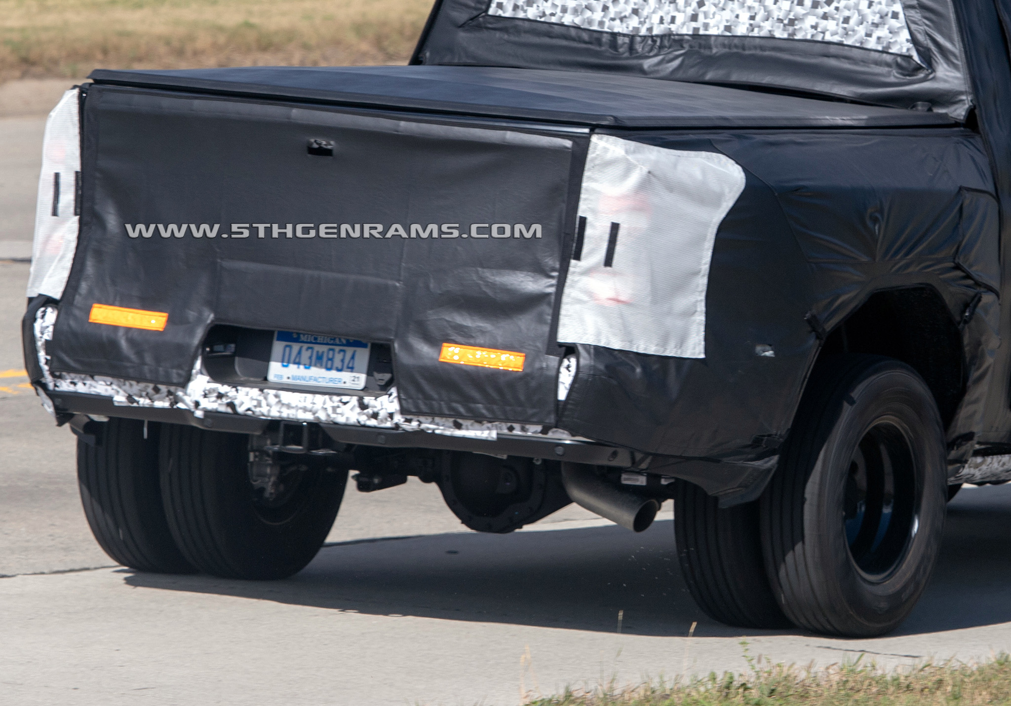But if the boxes are the same, how can it fit the tail lamps which can be seen through the white mesh of the camouflage from the 2019 Ram 1500 models? Well Real Fast Fotography also caught the same 2020 Ram 3500 Mega Cab DRW model on the highway, with its camouflage peeling back and exposing the new tail lamps.