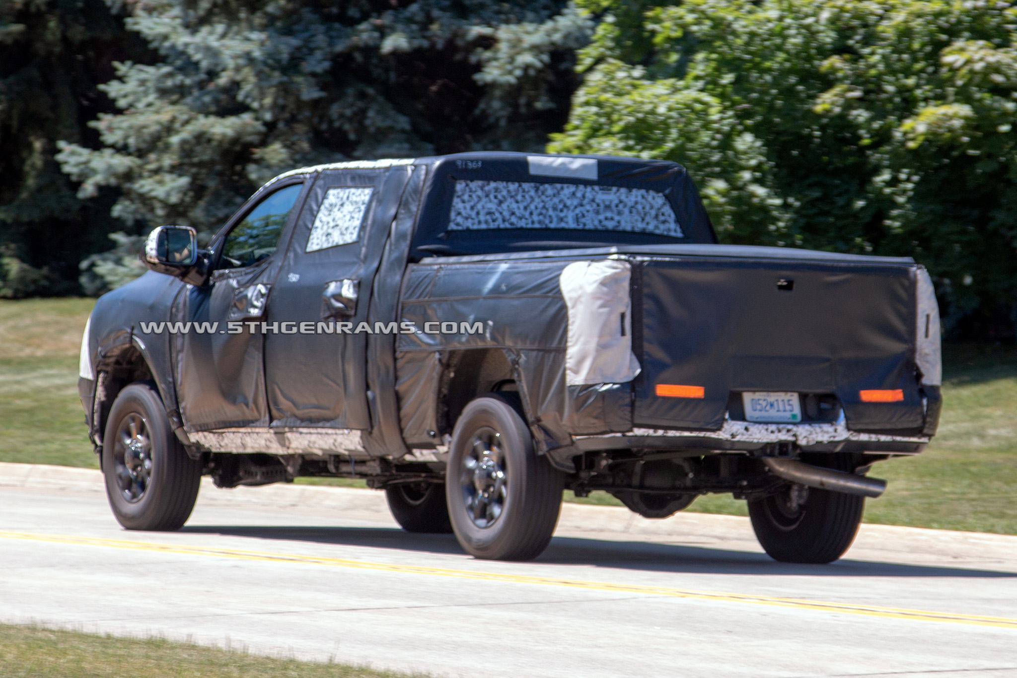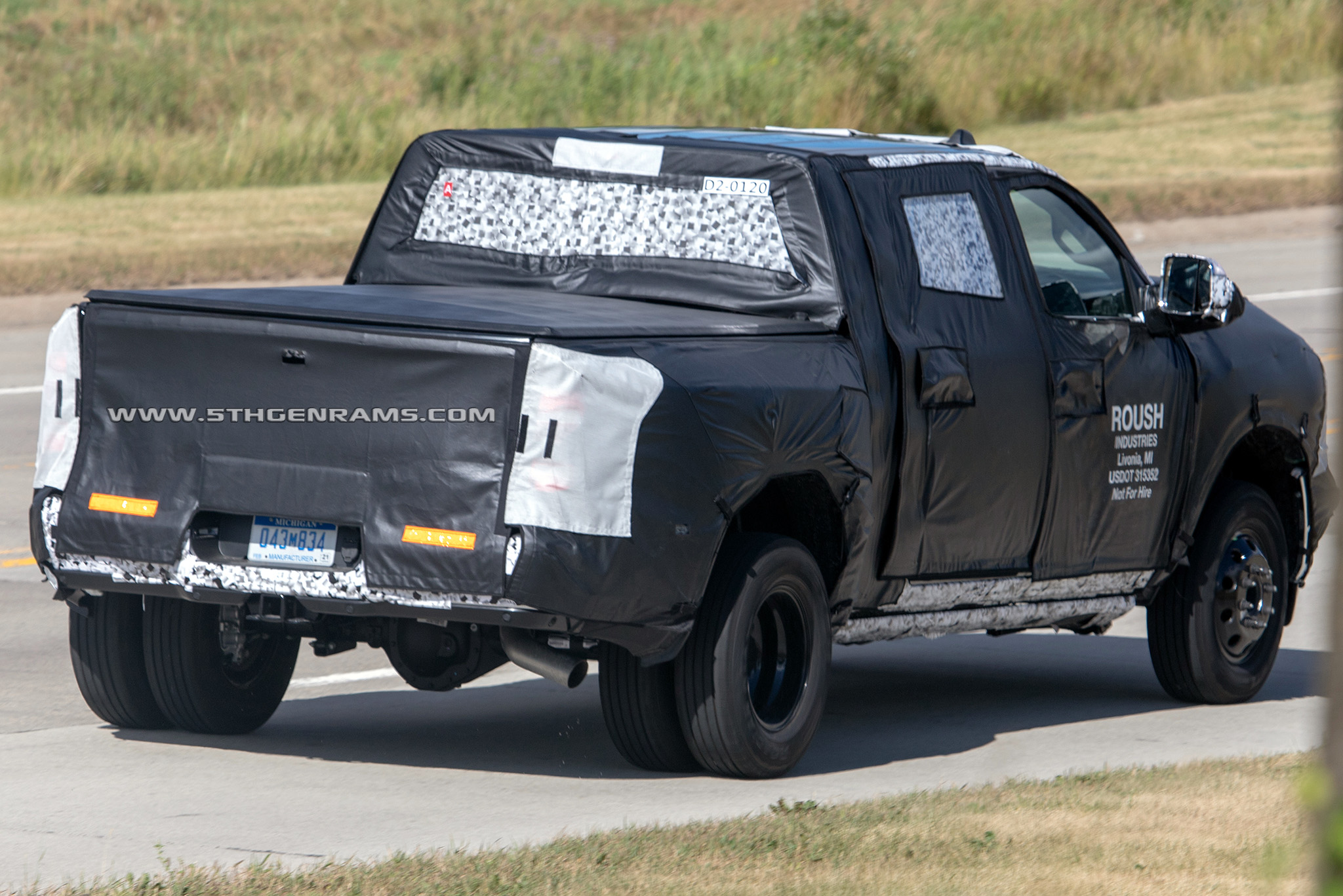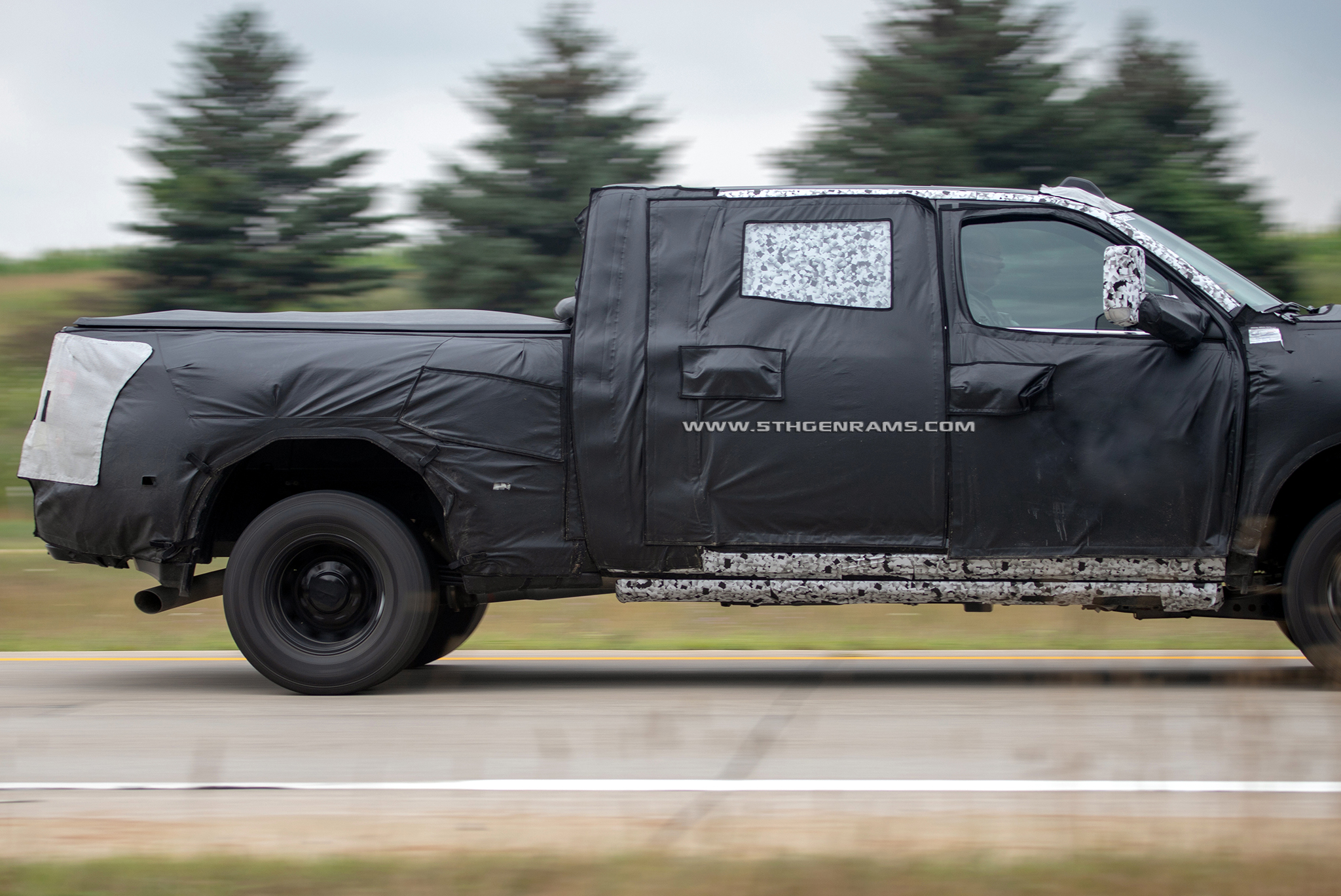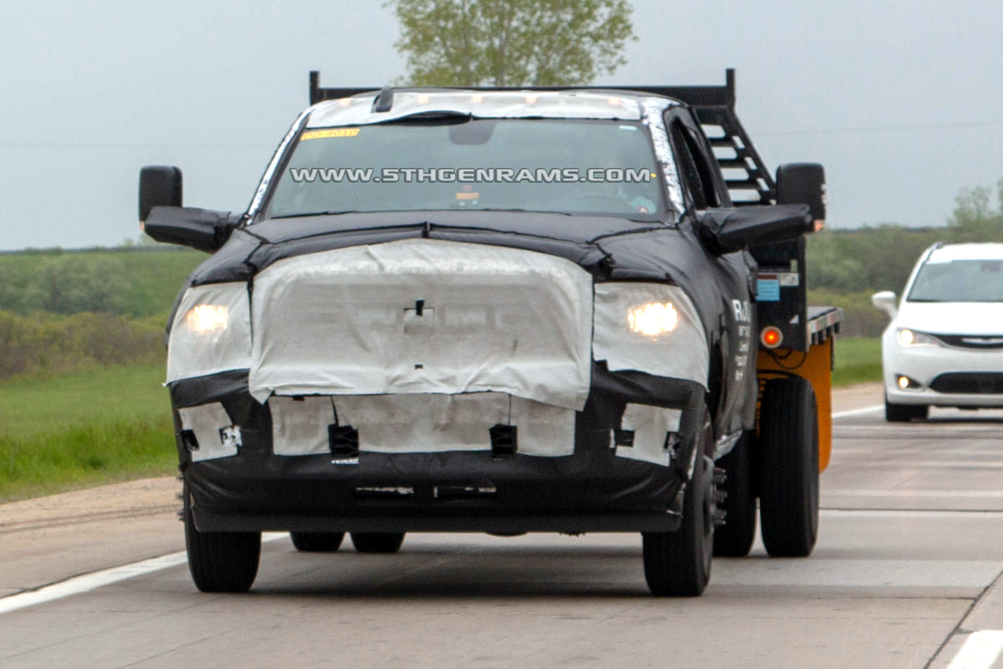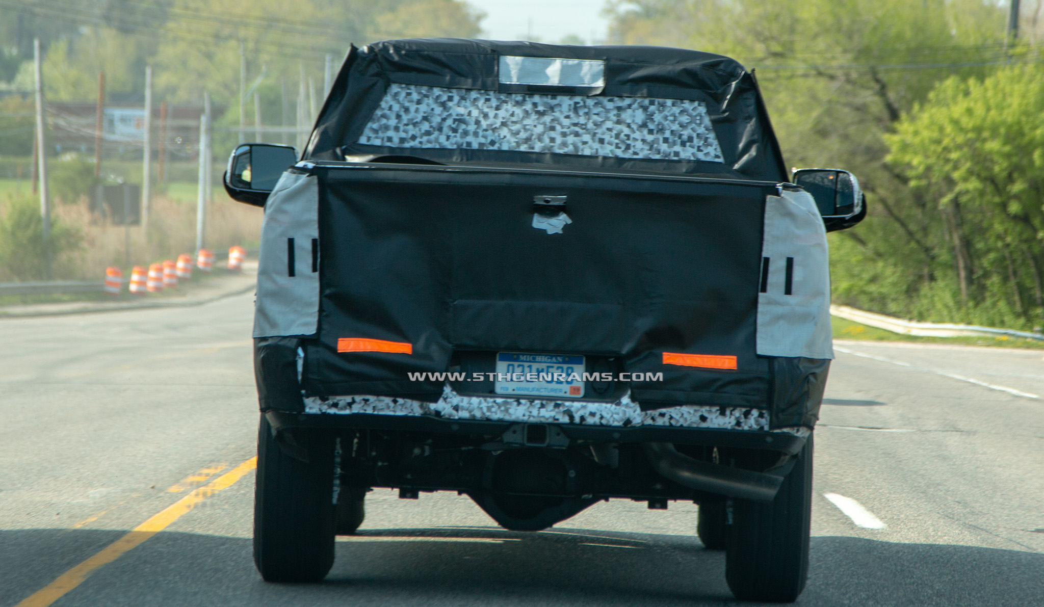But if the boxes are the same, how can it fit the tail lamps which can be seen through the white mesh of the camouflage from the 2019 Ram 1500 models? Well Real Fast Fotography also caught the same 2020 Ram 3500 Mega Cab DRW model on the highway, with its camouflage peeling back and exposing the new tail lamps.