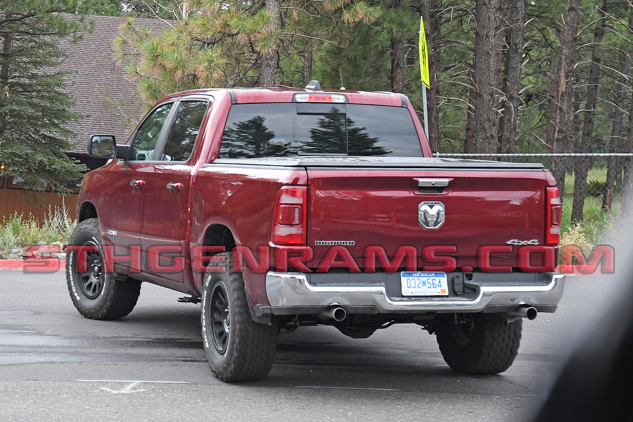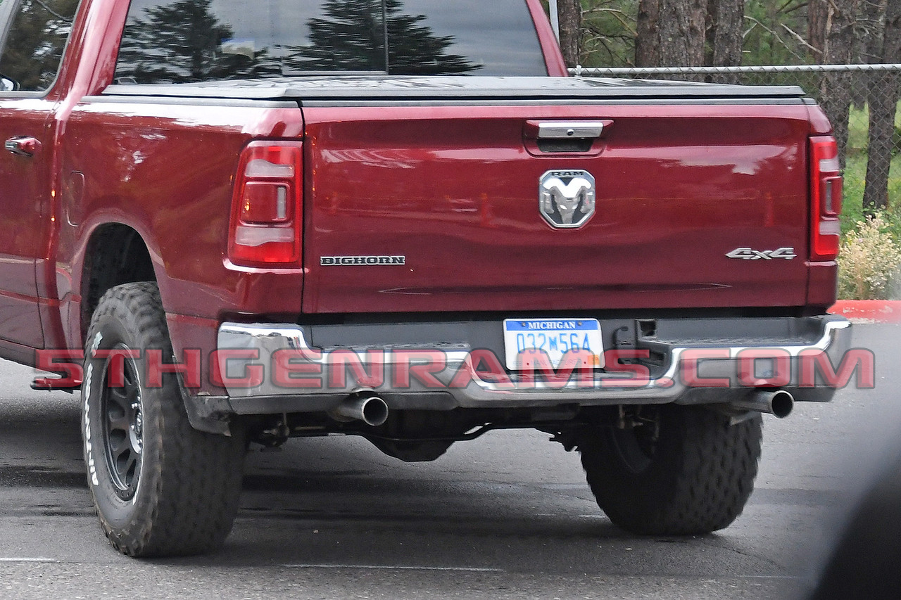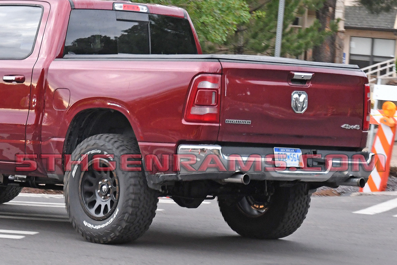 Now why would this truck need that axle bracket when other Ram 1500s don’t? The photographer said that this truck had the distinctive HELLCAT supercharger whine and that when the engineer got on it to get away from being photographed the truck took off like a rocket. Visually you can tell that the truck is testing a new powertrain by the distinctive exhaust tips as well. Exhaust tips like these are typically on powertrain mules as they have a lip that makes it easier for engineers to hook testing equipment up to.
