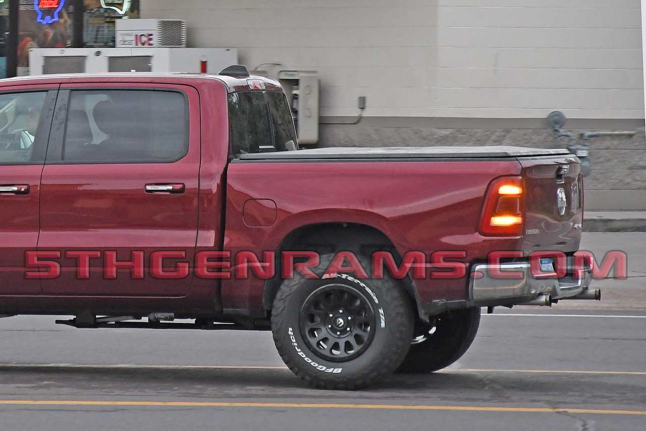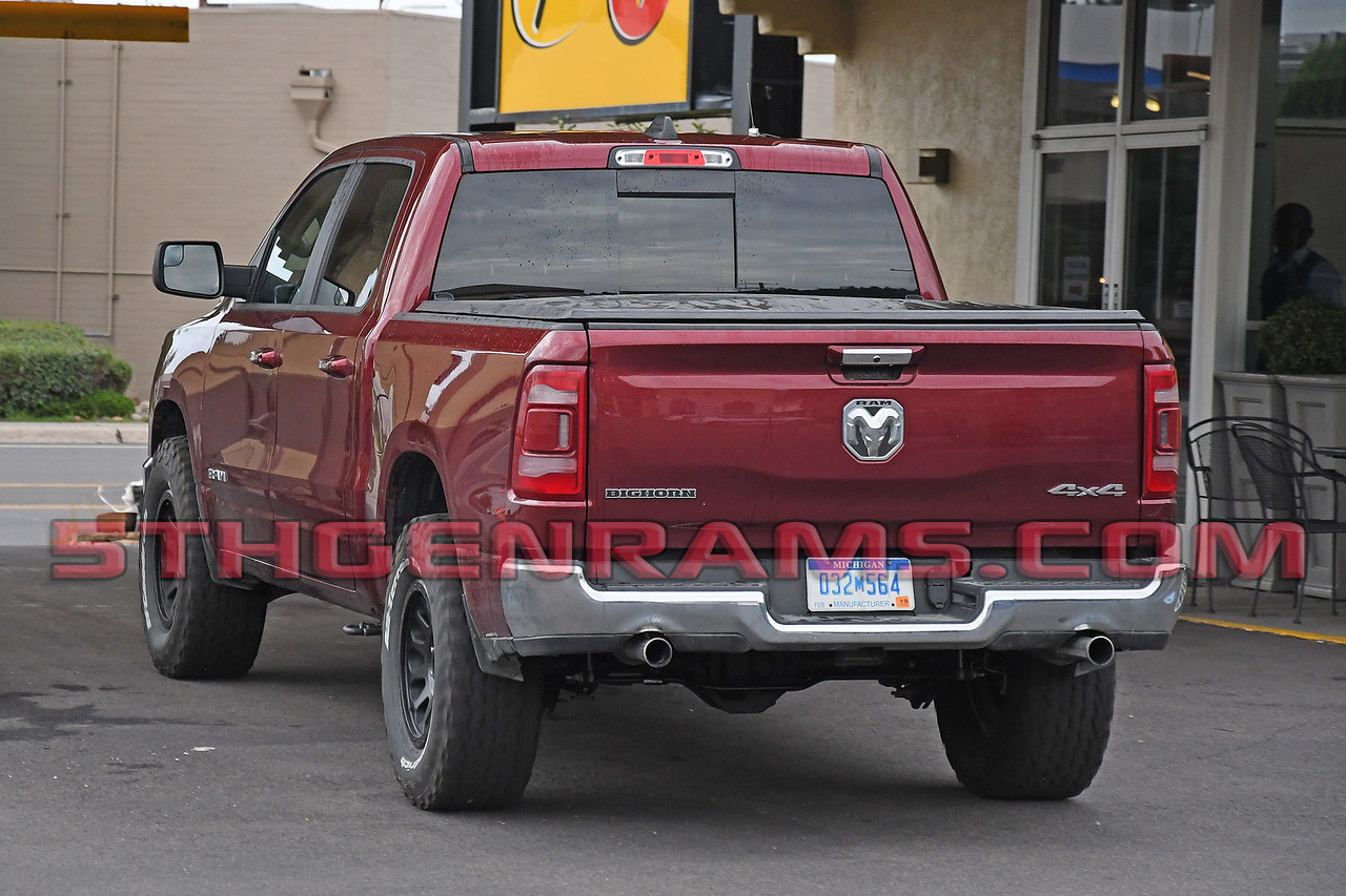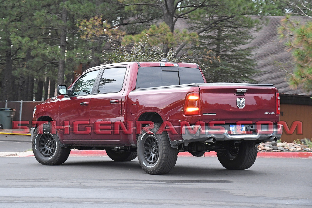Now why would this truck need that axle bracket when other Ram 1500s don’t? The photographer said that this truck had the distinctive HELLCAT supercharger whine and that when the engineer got on it to get away from being photographed the truck took off like a rocket. Visually you can tell that the truck is testing a new powertrain by the distinctive exhaust tips as well. Exhaust tips like these are typically on powertrain mules as they have a lip that makes it easier for engineers to hook testing equipment up to.
