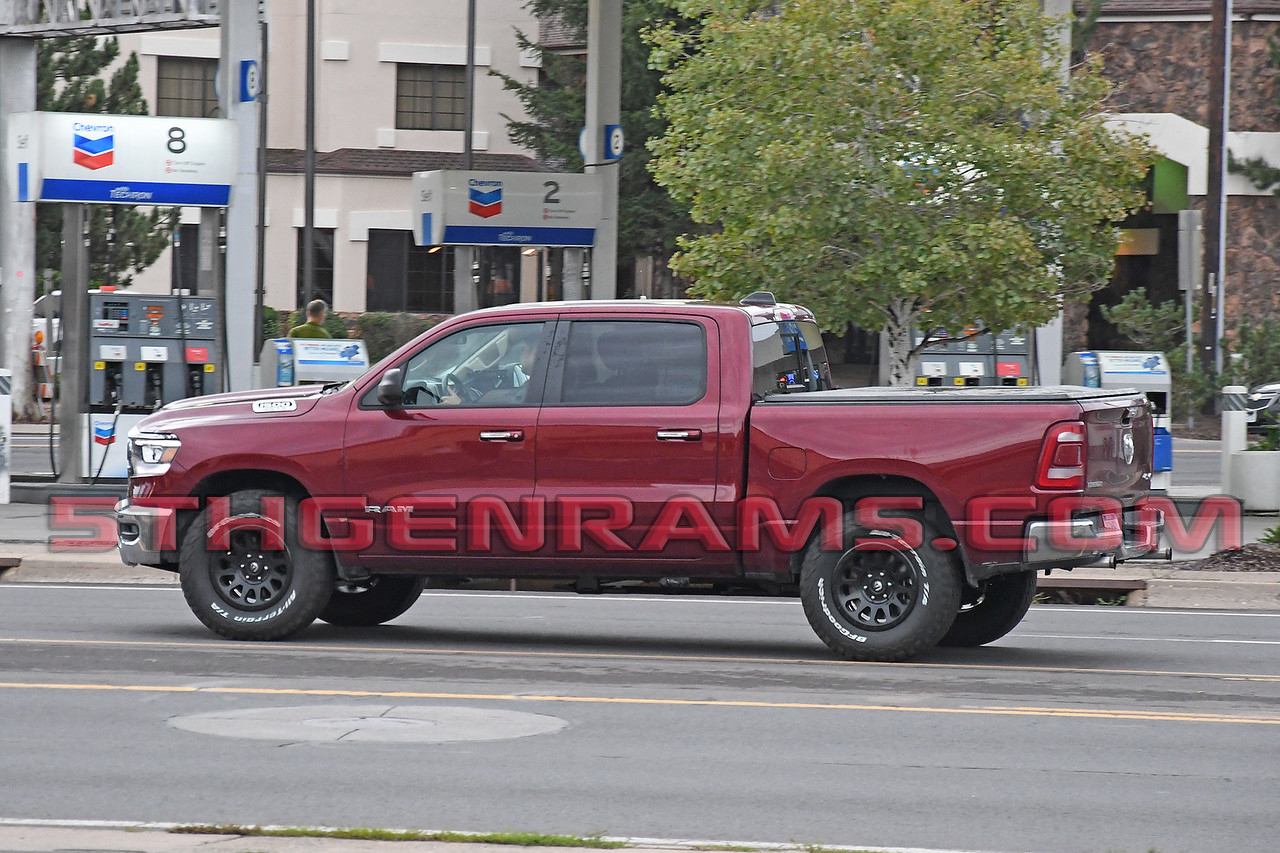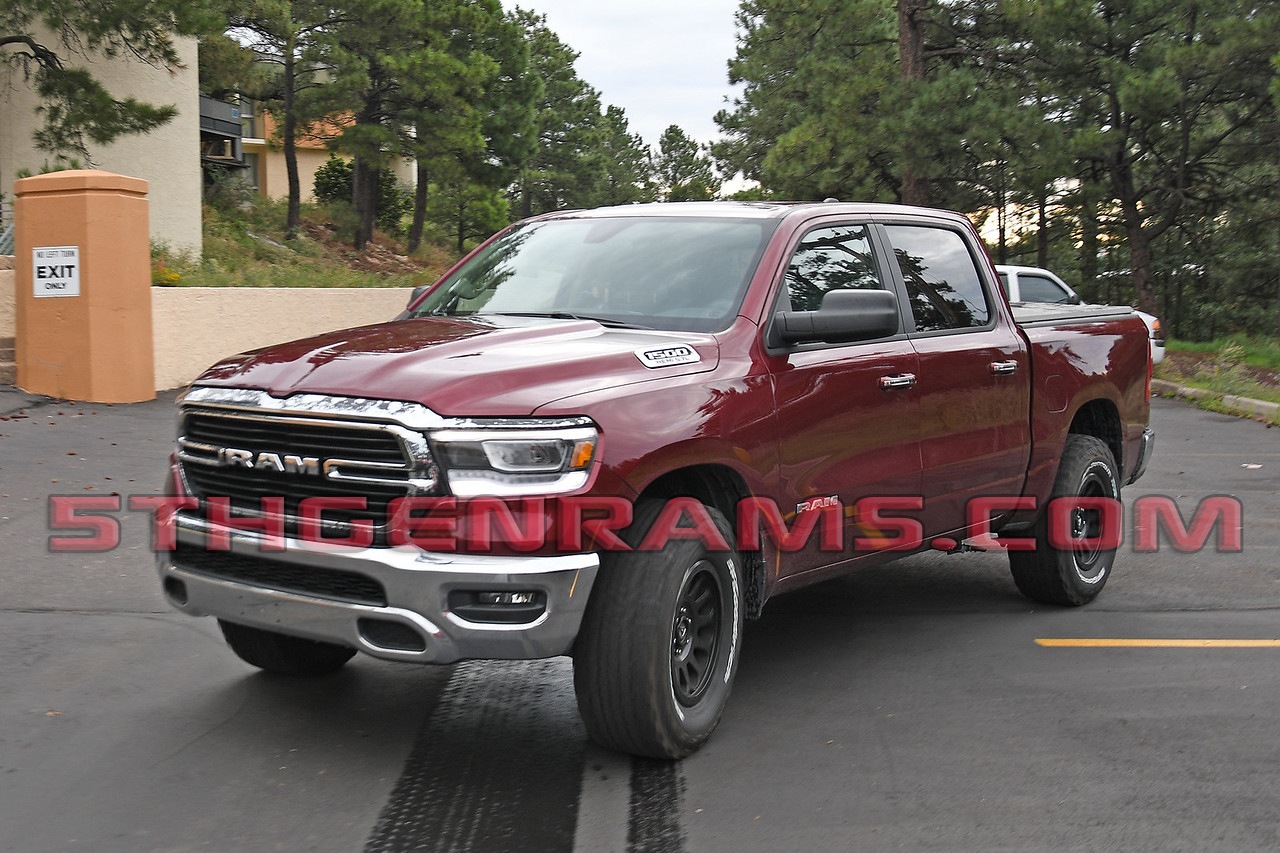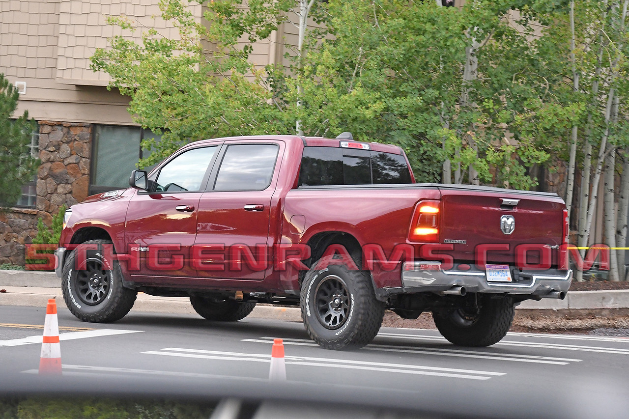 Our friends at Spiedbilde photography just sent us over these photos of what is believed to be a Ram Rebel TRX powertrain mule. This truck was recently caught testing in Arizona with a Challenger HELLCAT widebody and while it looks like a standard Big Horn there are a few external clues.
