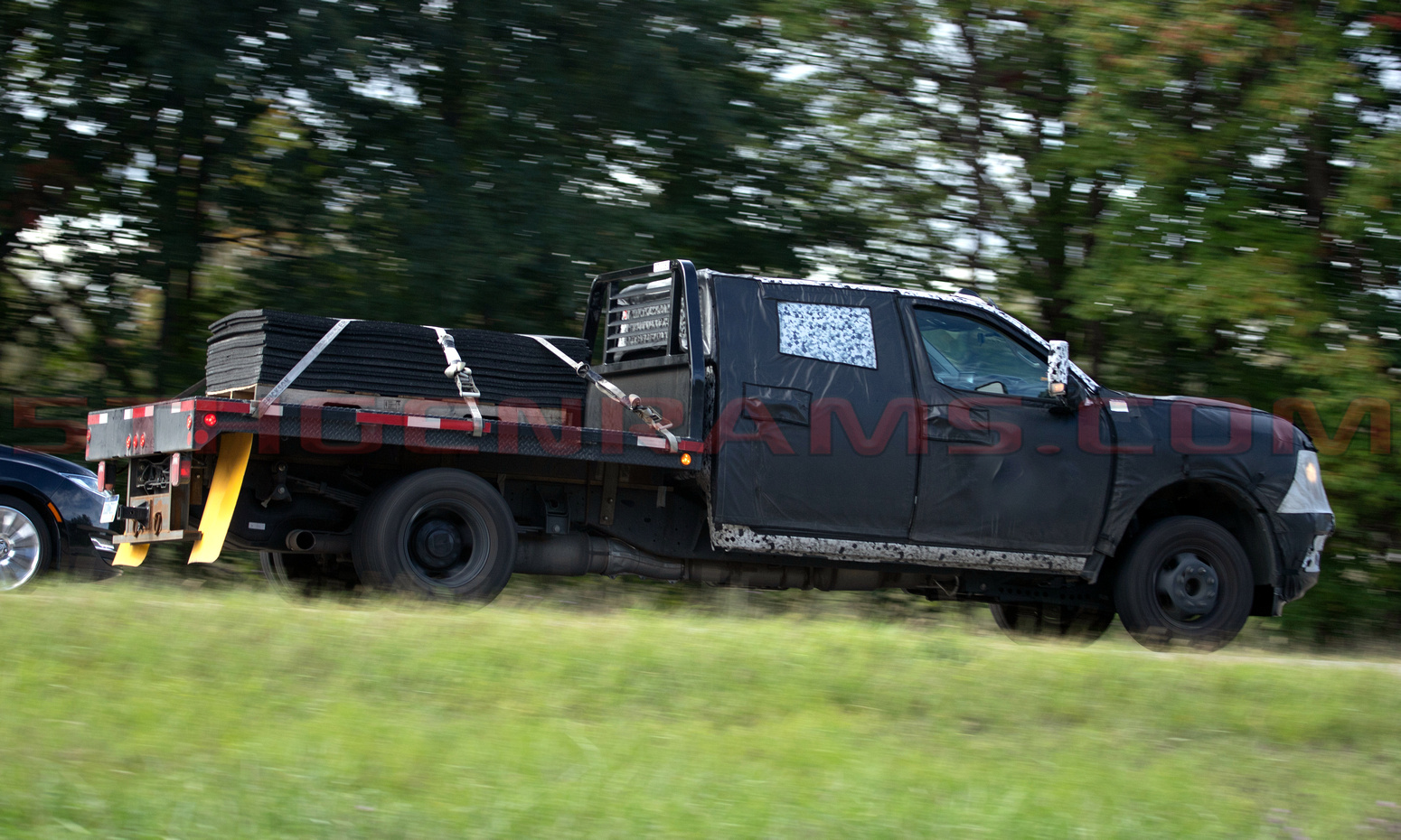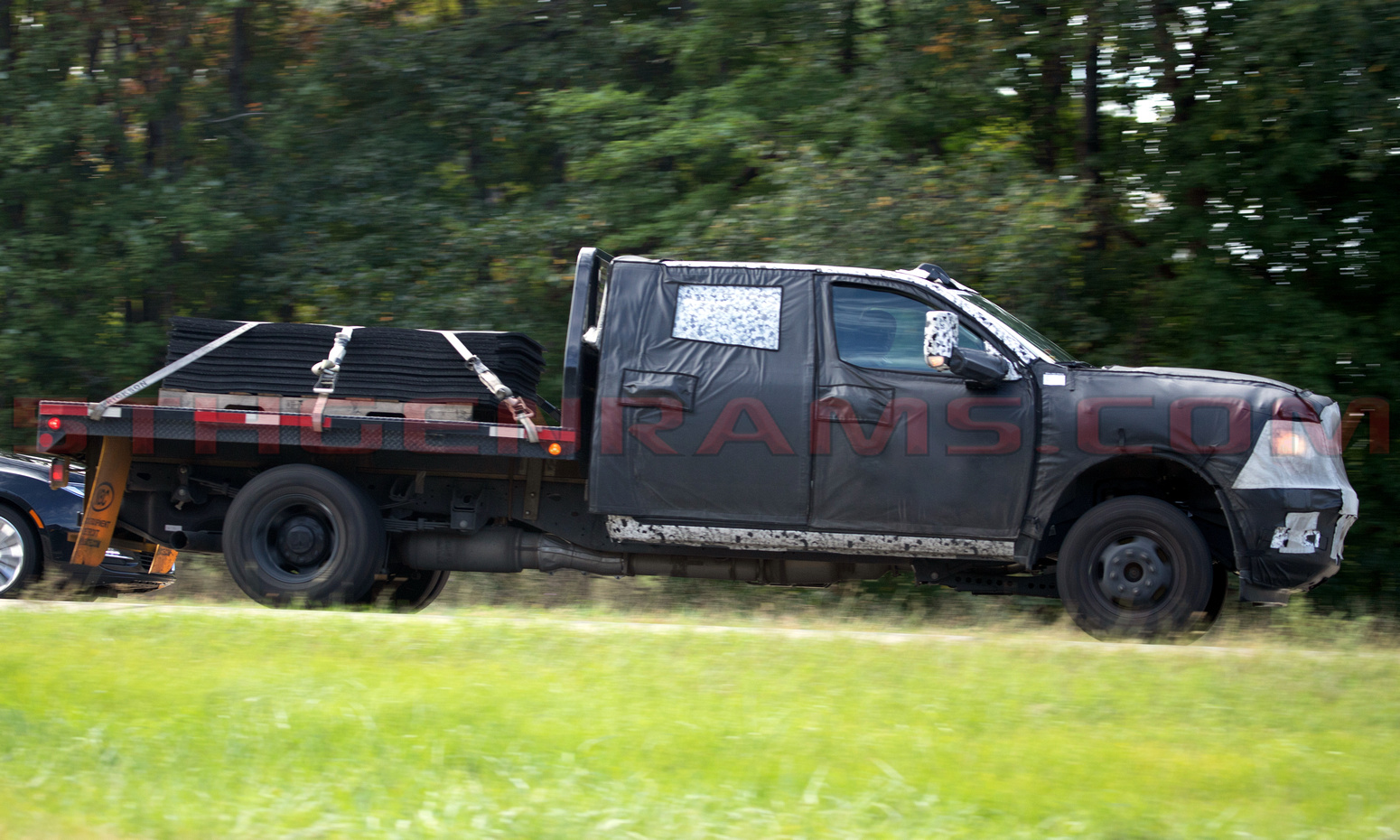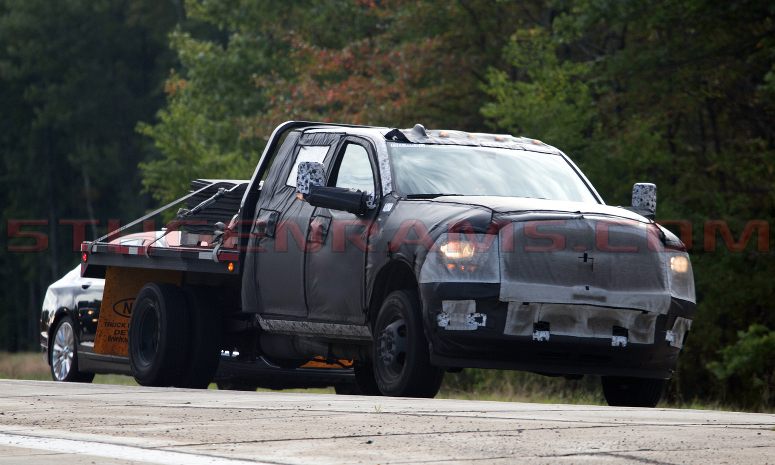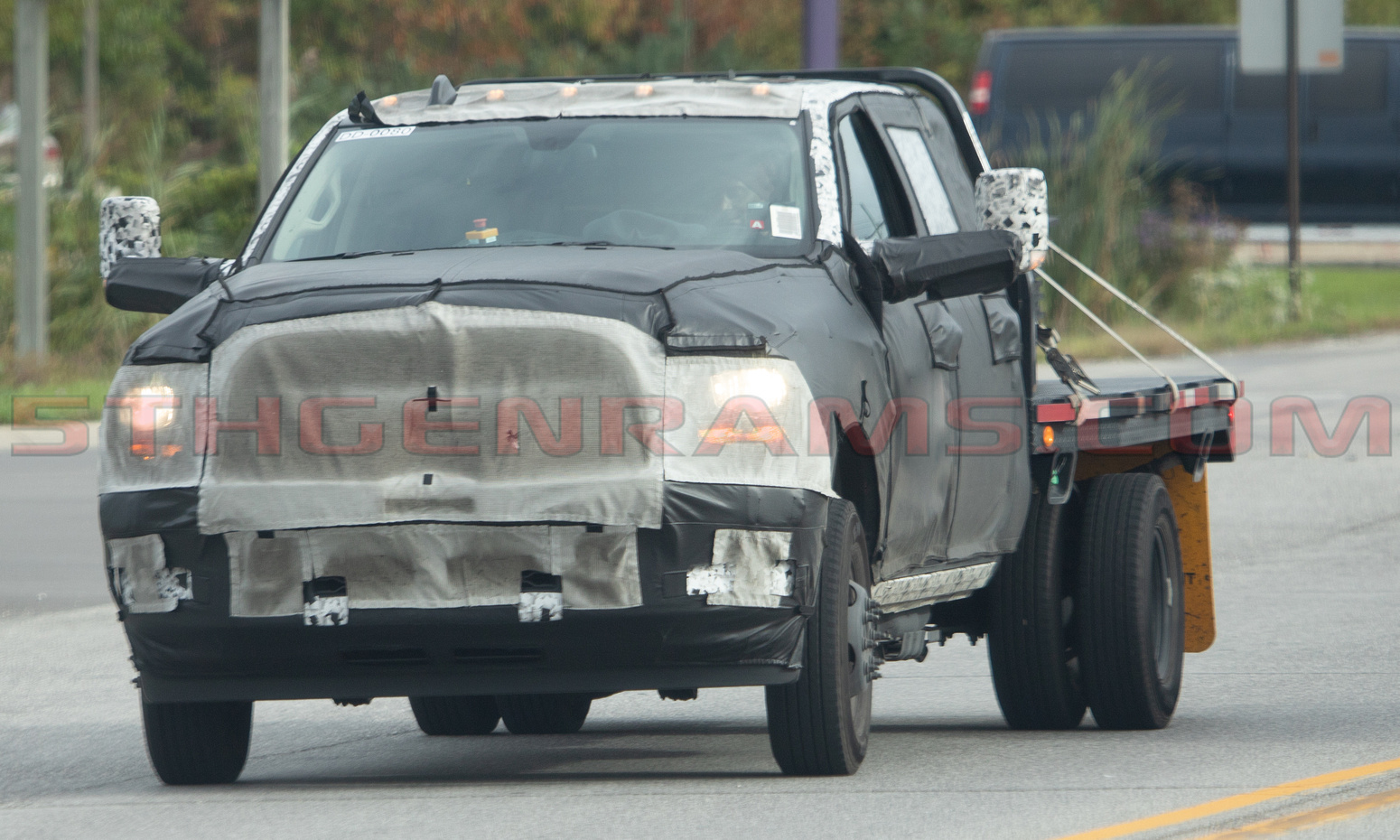 It appears that this model is a entry-level Tradesman model, judging by its halogen headlights and it’s grille treatment lightly peaking through the camouflage. This is the second new Heavy Duty Ram we have featured testing its capabilities the past few weeks.