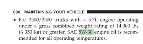 And note how they recommend 5w-30 in the 2500 variant when towing gets past 7000-ish pounds