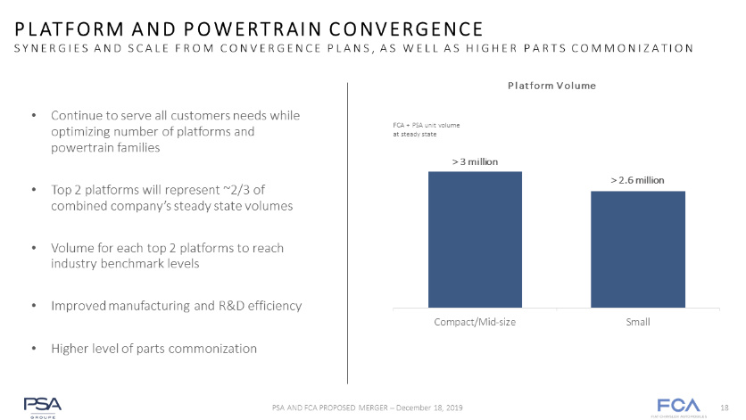 The efficiencies that will be gained from optimizing investments in-vehicle platforms, engine families and new technologies while leveraging increased scale will enable the business to enhance its purchasing performance and create additional value for stakeholders. More than two-thirds of run-rate volumes will be concentrated on 2 platforms, with approximately 3 million cars per year on each of the small platform and the compact/mid-size platform.
