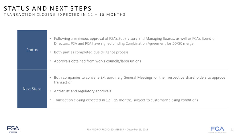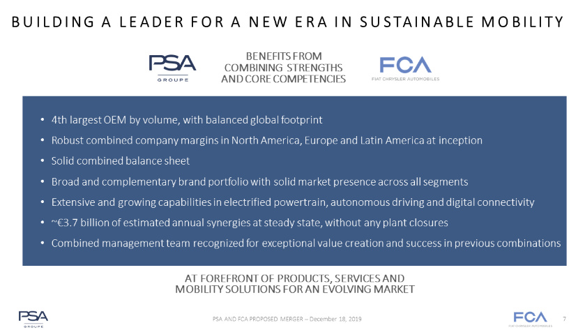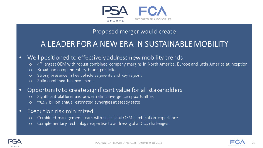 Fiat Chrysler Automobiles & Groupe PSA Merger Presentation Slides: