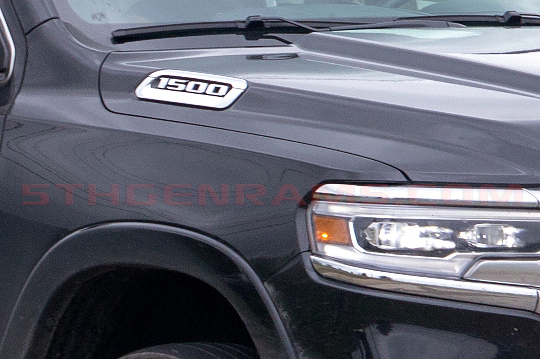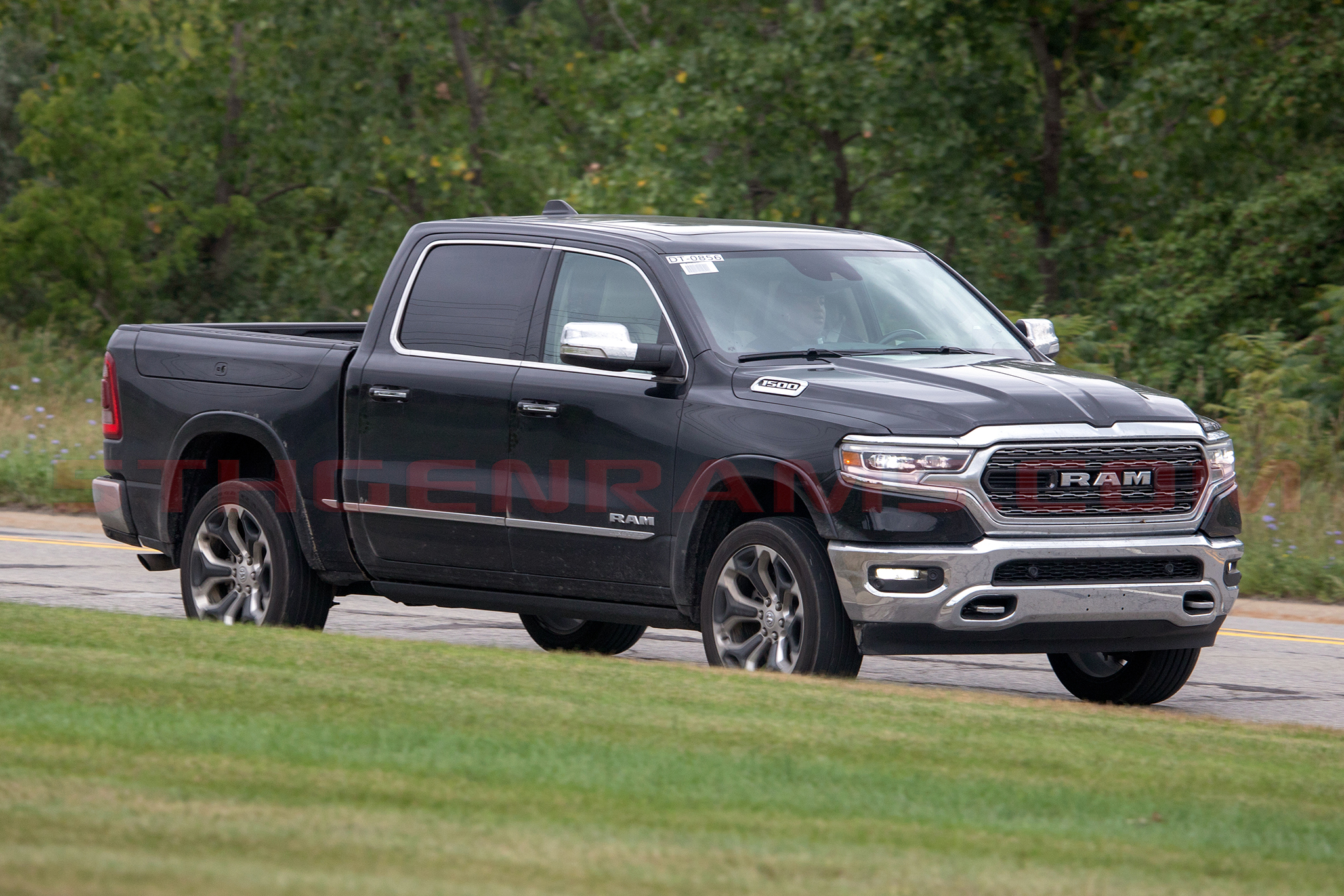 This model caught testing lacks not only the dual-rear bumper exhaust, but the prominent 5.7-liter HEMI text under the new 1500 badges on the hood were also missing.