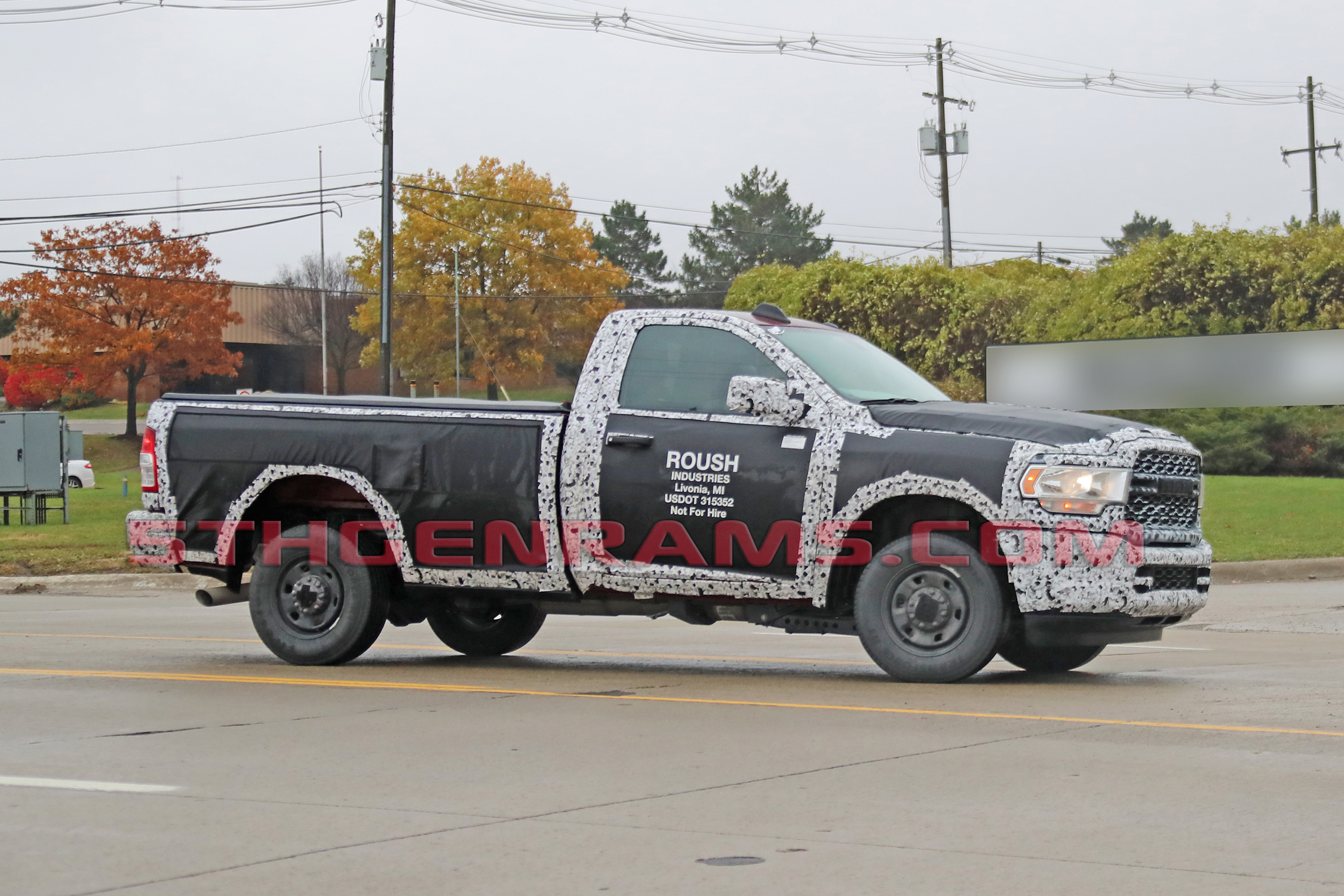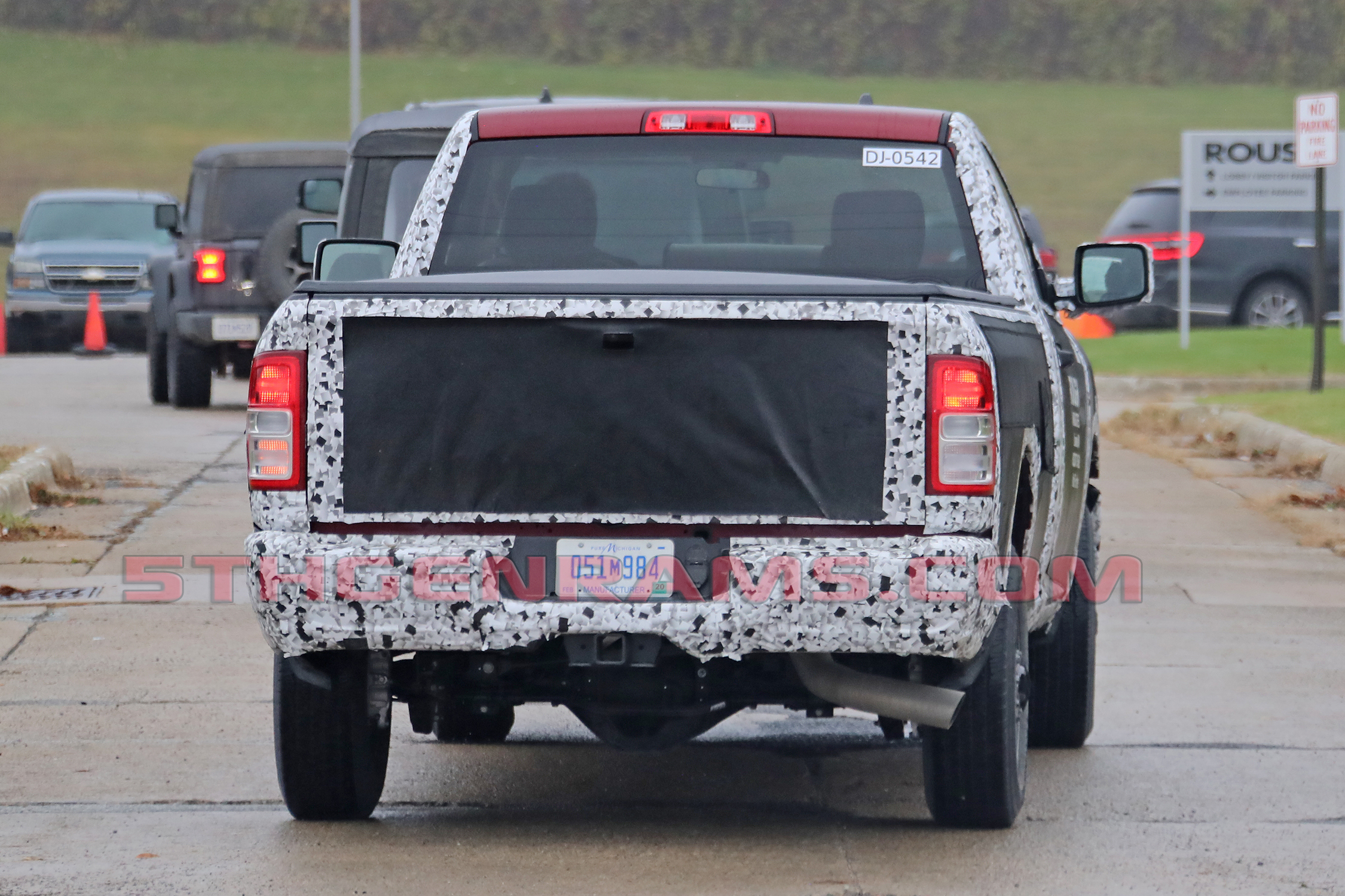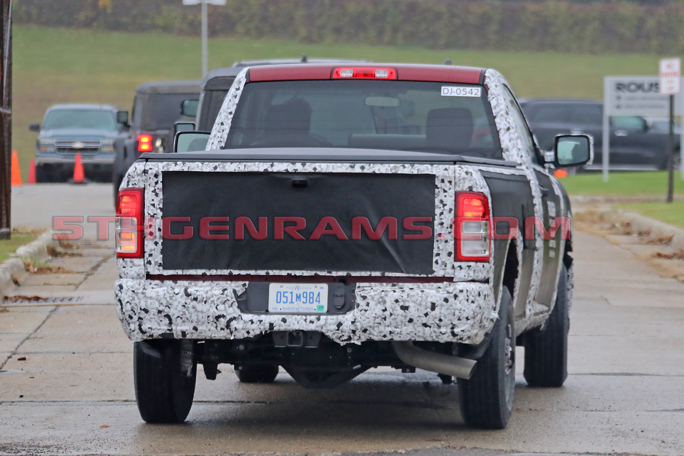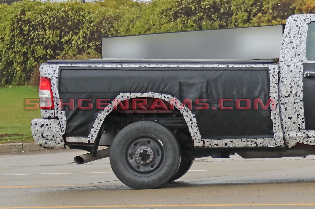 Front end styling is also much more squared off than the current model, which has a tilt-forward look. We can see the “Ram Horns” trim above the grille as dip going over to the headlamps, very similar to the all-new 2019 Ram 1500.