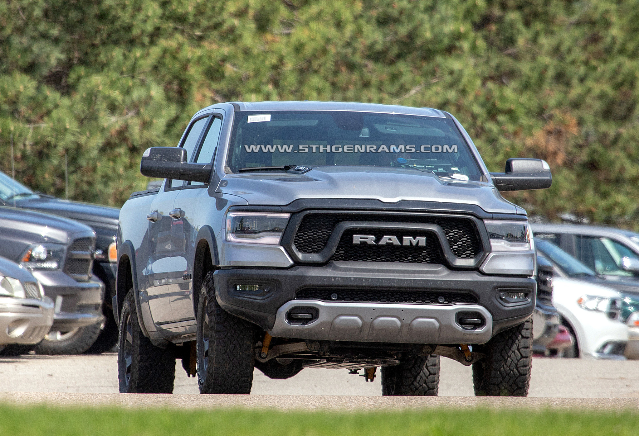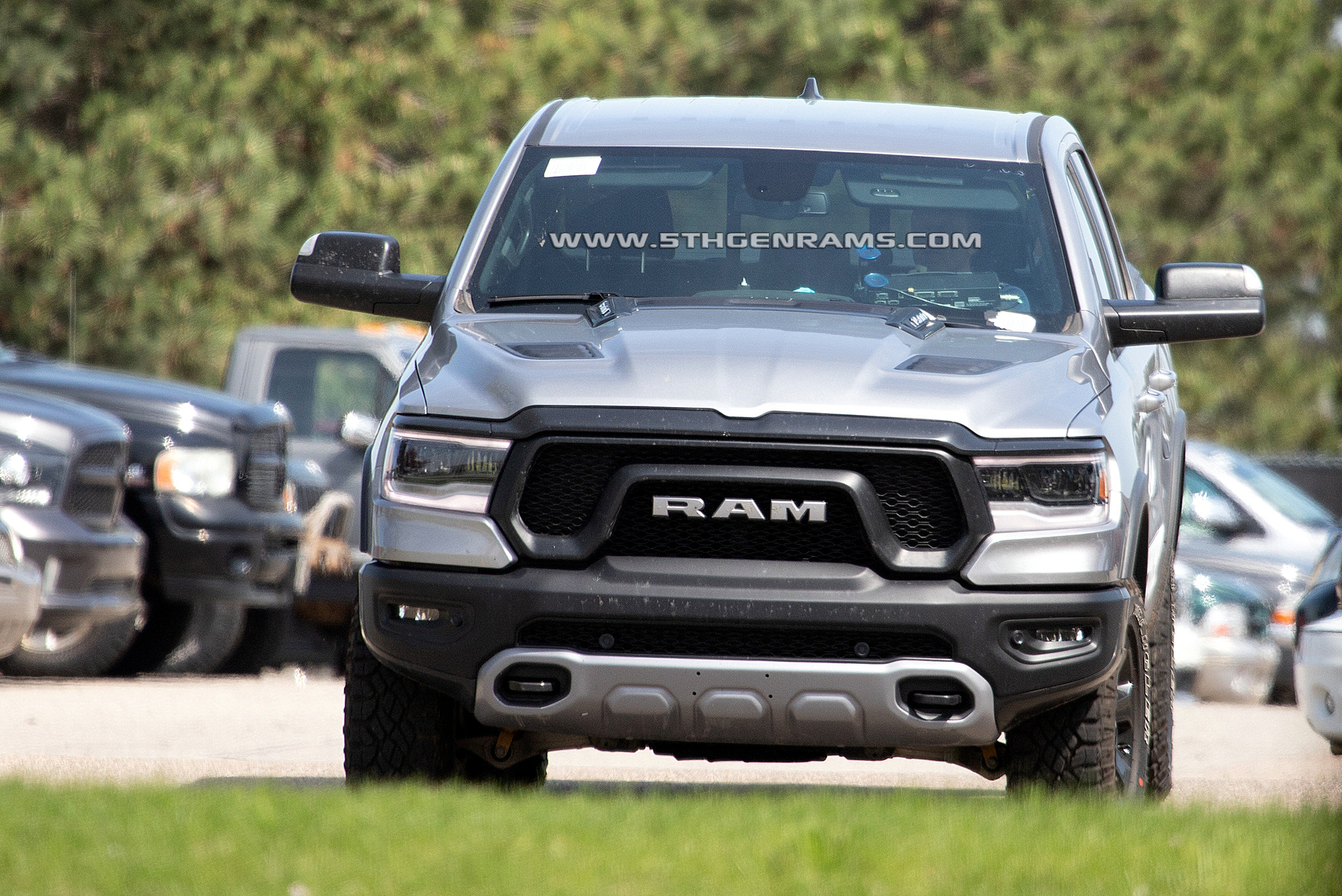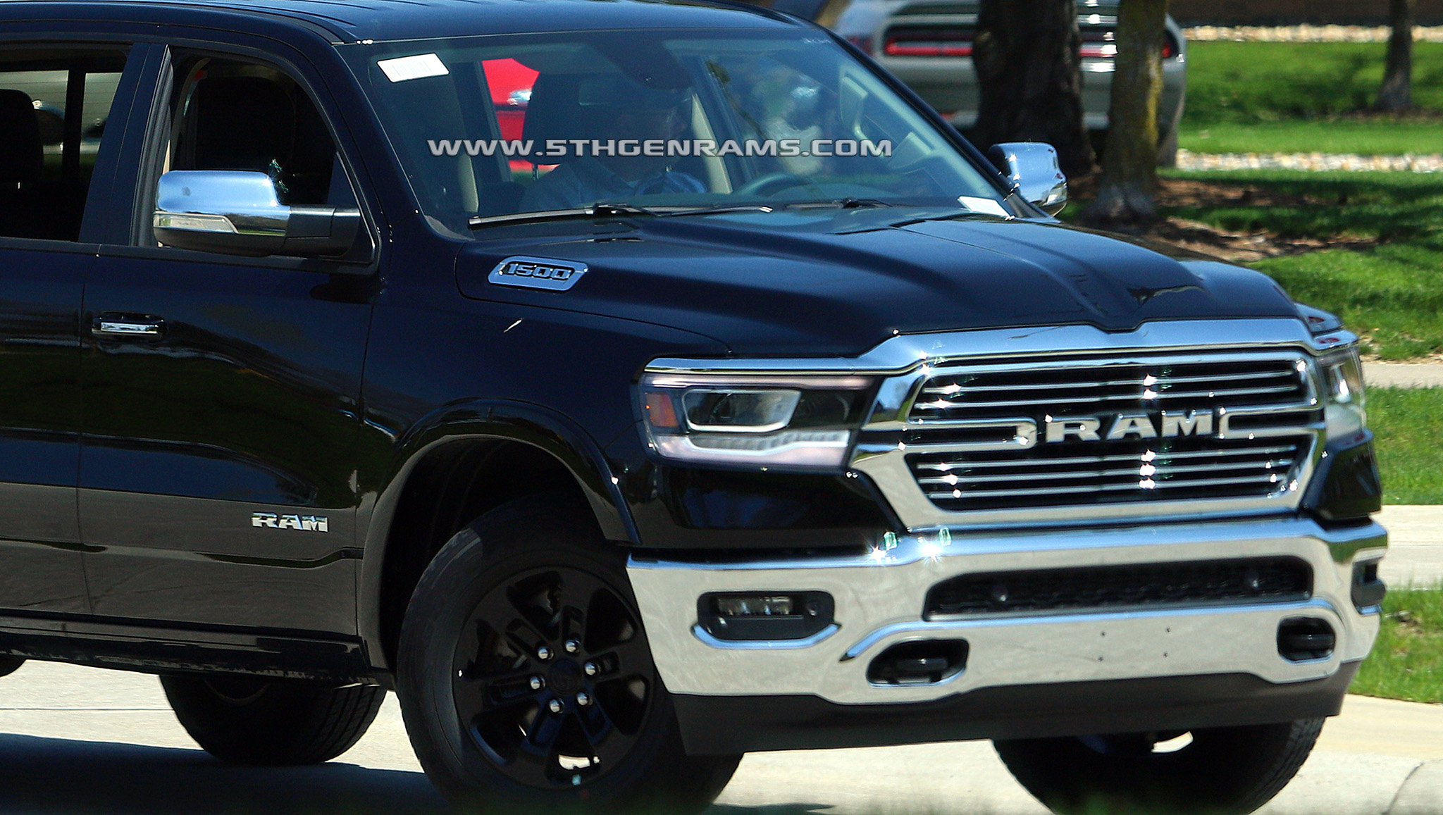 With the 2019 Ram 1500 V6 Pentastar production start date getting close, our friends at Real Fast Fotography have recently caught a few Pentastar equipped trucks out testing. We know these trucks are V6 models due to their different hood badges (no 5.7 Hemi script under the 1500 on the black truck or beside the 1500 model designation on the Rebel.)