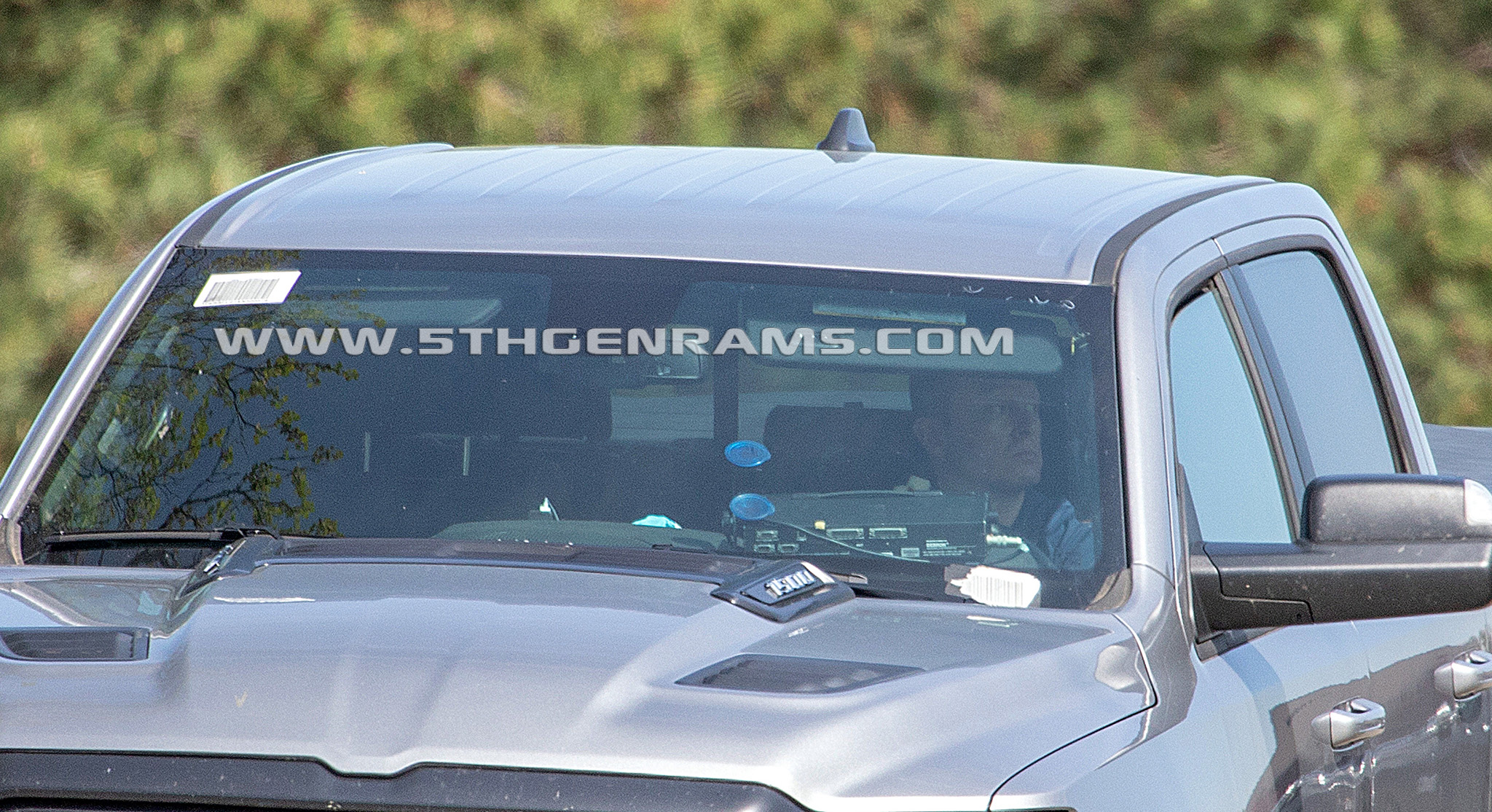 A host of computer testing equipment is also seen through the windshield of this Rebel tester. We have been told to expect Pentastar equipped trucks to begin production in August and have seen a leaked document, listing a 27 MPG highway number. We don’t know whether that number is EPA certified or would be achievable on all trucks or just the HFE model. The Pentastar continues to be rated at 305hp and 269lb ft of torque as in previous models, but all come with FCAs new eTorque system which ads start/stop functionality and up to 90lb ft of launch torque on the V6 equipped models.
