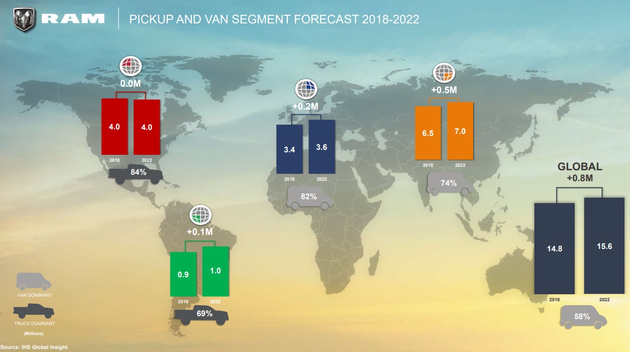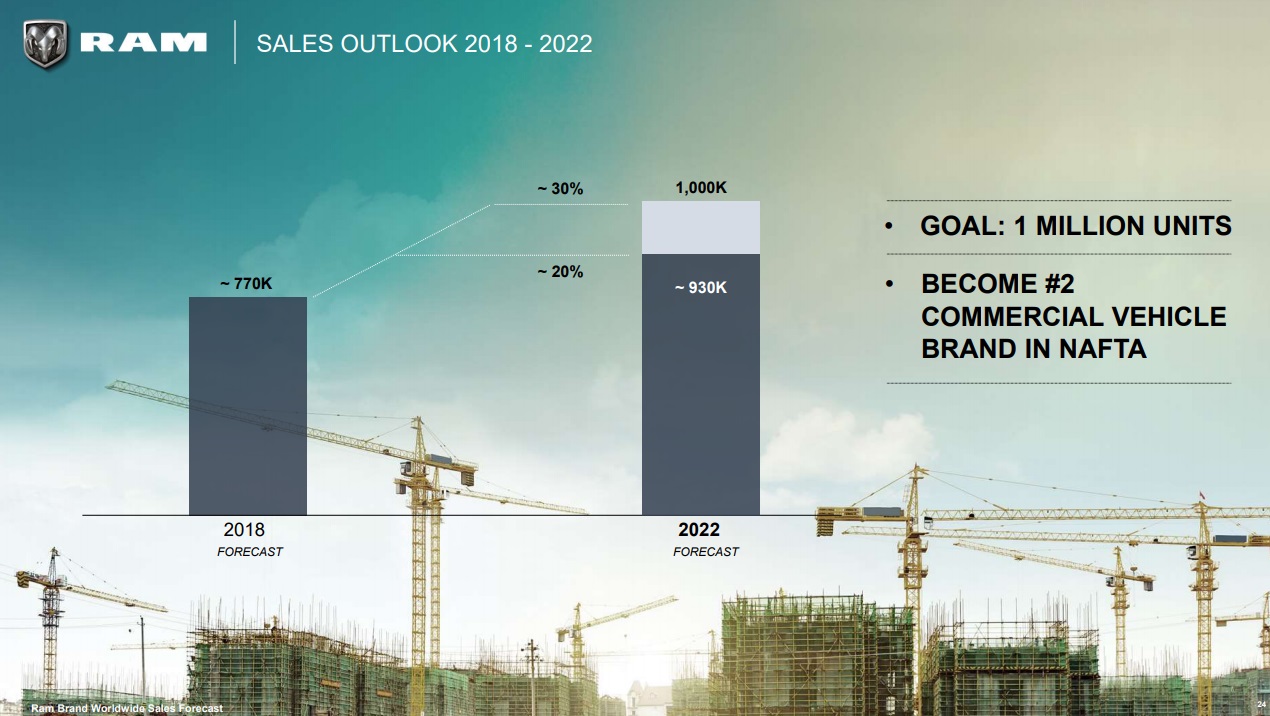Ram has a goal of selling one million units a year globally by 2022. That is a 30% increase compared to the 2018 forecast of 770,000 units.