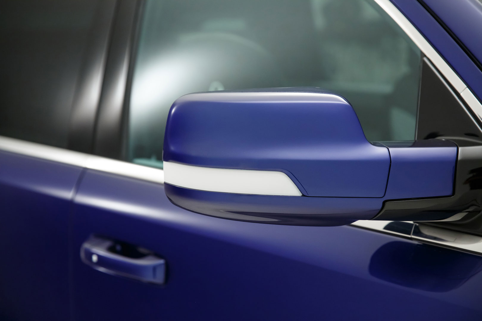 A squared-off front grille has a very bold presence and is backlit with LEDs to create its own signature look. It reminds us of the new backlit grille design shown on the Jeep® Grand Wagoneer Concept, which is based on the fifth-generation Ram 1500 architecture as well.