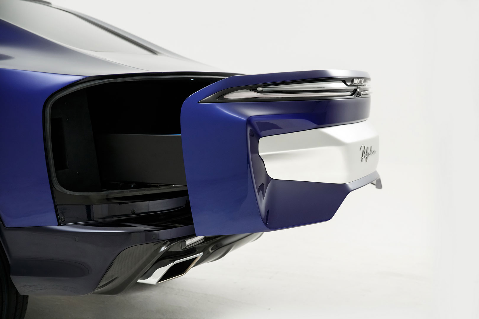 Rear fender arches remind us of the 2006 to 2010 Dodge Charger, however, awkwardly placed narrow rectangular windows are placed being the rear door. Rear styling that a drastic change when compared to the rest of the vehicle. The rear of the vehicle has a much smoother and rounder appearance than the front of the vehicle. The tailgate is replaced by a drawer-style access panel, allowing the owner to still store goods and items in the rear of the vehicle.